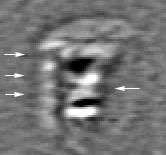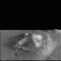 Fine-scale structure in the mouth that look like teeth is also evident. Like the cross lines seen in the previous figure, these features (shown below) cannot be dismissed as noise in the imagery or artifacts of the processing since they appear in both 35A72 and 70A13 taken about 35 days apart.