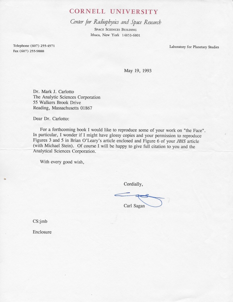Although Sagan never thought the Face could be anything other than an eroded mesa he did offer this: