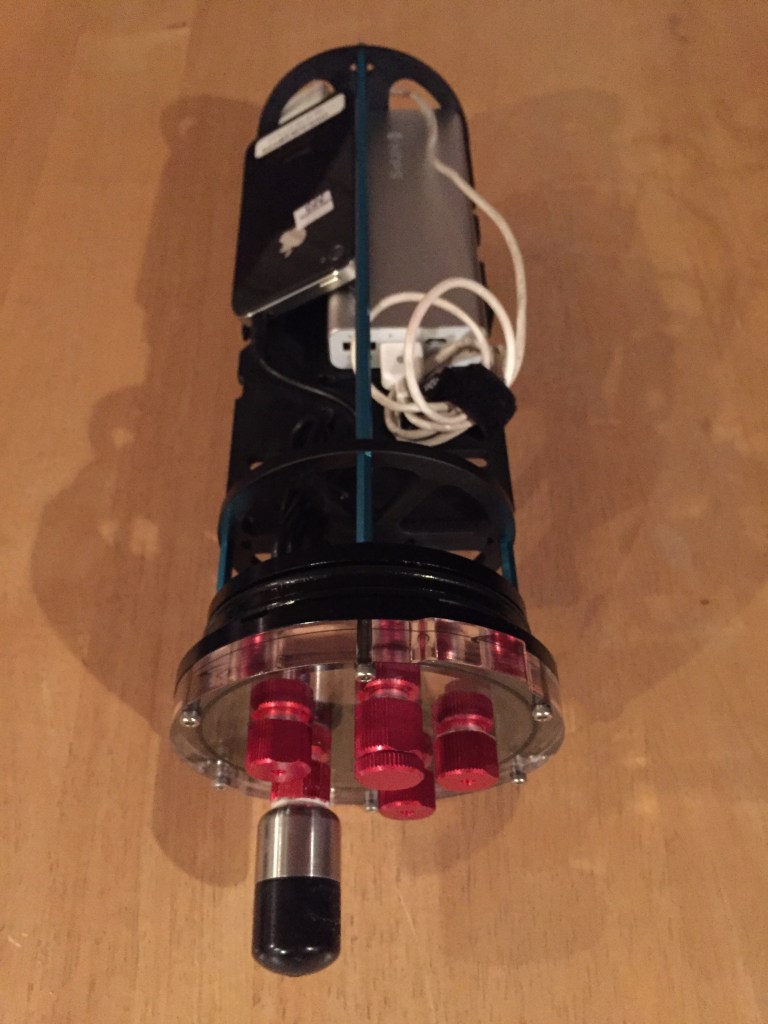 I tested a prototype of what I called an AquiPod consisting of an iPhone 4 and an external battery in a Blue Robotics 4-inch watertight enclosure at Flat Rocks in mid-summer 2015. The app was designed to collect time-lapse photos over an extended period of time, from hours to days, depending on battery life. After setting the iPhone not to go to sleep, I launched the app, placed the iPhone in the watertight container, closed the container, floated the AquiPod on a boogie board off-shore, and lowered it to the bottom. Four hours later I retrieved it, opened up the container, and downloaded a video. Although it didn’t show much, the watertight container did not fill with water, the iPhone did not overheat, and the app worked.