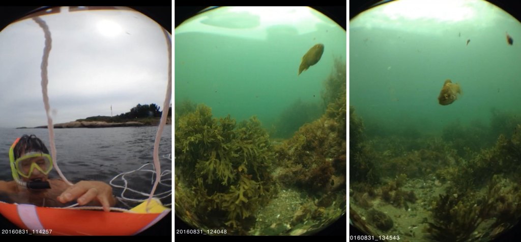 With the help of an intern A.J. Marcinek from Endicott College the following summer a number of collections were made around the Cape and North Shore. Using a smaller version of the AquiPod (AquiPod Lite) consisting of an iPhone in a commercially available watertight case plus a five-pound anchor, A.J. captured videos of fish, crabs, and other sea life close to shore.