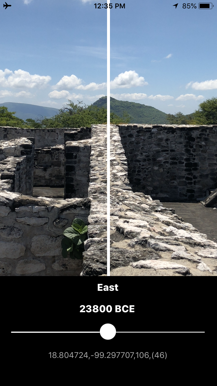 Sacred Directions AR can be used anywhere as it does not require an Internet connection. Hold it up and rotate in a circle to find the cardinal directions, summer and winter solstice sunrise and sunset directions, the summer and winter major and minor lunar standstill moonrise and moonset directions. The time slider allows you to view these directions now or anytime within the past 170,000 years.