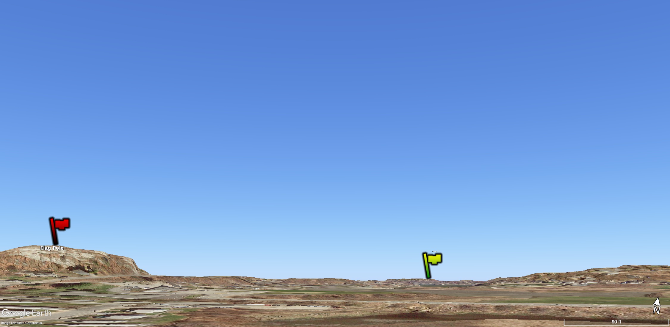 In 2021 my friend Chuck and I found a rock at the northern end of Poles Hill with several iron rods sticking up out of it that could have anchored some kind of structure. Placing a marker at this location one can generate a Google Earth rendering that matches the general position of the two poles.