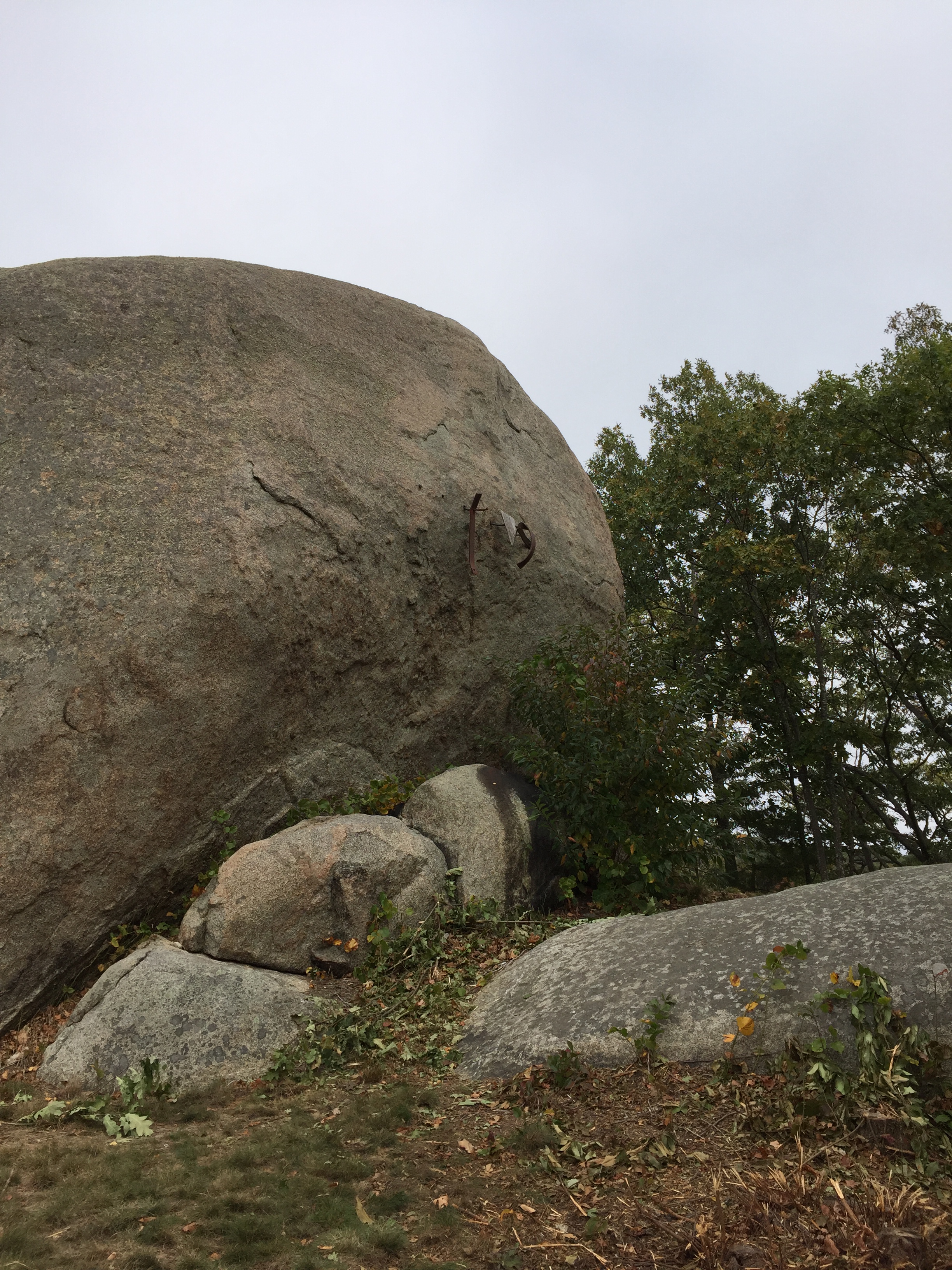 Sitting at the highest spot on Poles Hill was a tower or more precisely a flagstaff erected in 1861 after the capture of Fort Sumter at the start of America’s Civil War (Gloucester Daily Times, April 18, 1894). I first learned of this feature later known as Dr. Babson’s flagpole while researching solar alignments on Poles Hill in 2014. The bolts and holes that served to anchor the structure, which was at least as tall as the hill – over 120 feet in height are all that remain today.