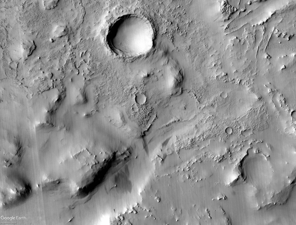 What is interesting is that at low elevation angles, surface features in several areas in the crater floor look artificial even though they are probably natural.